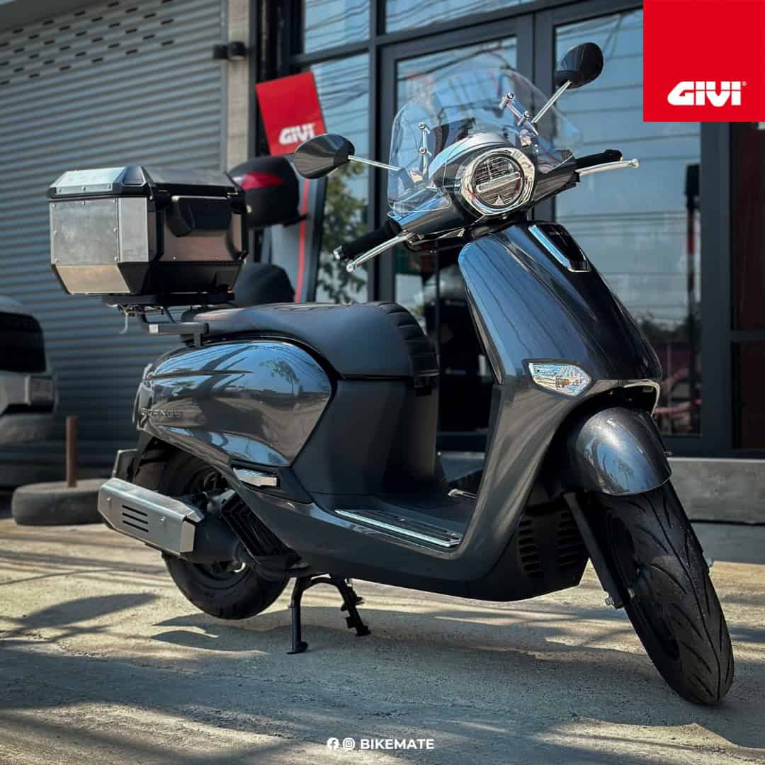 The Honda Giorno+ motorcycle has a style that matches many GIVI top boxes , whether it’s a round or square top box, giving users more options.
