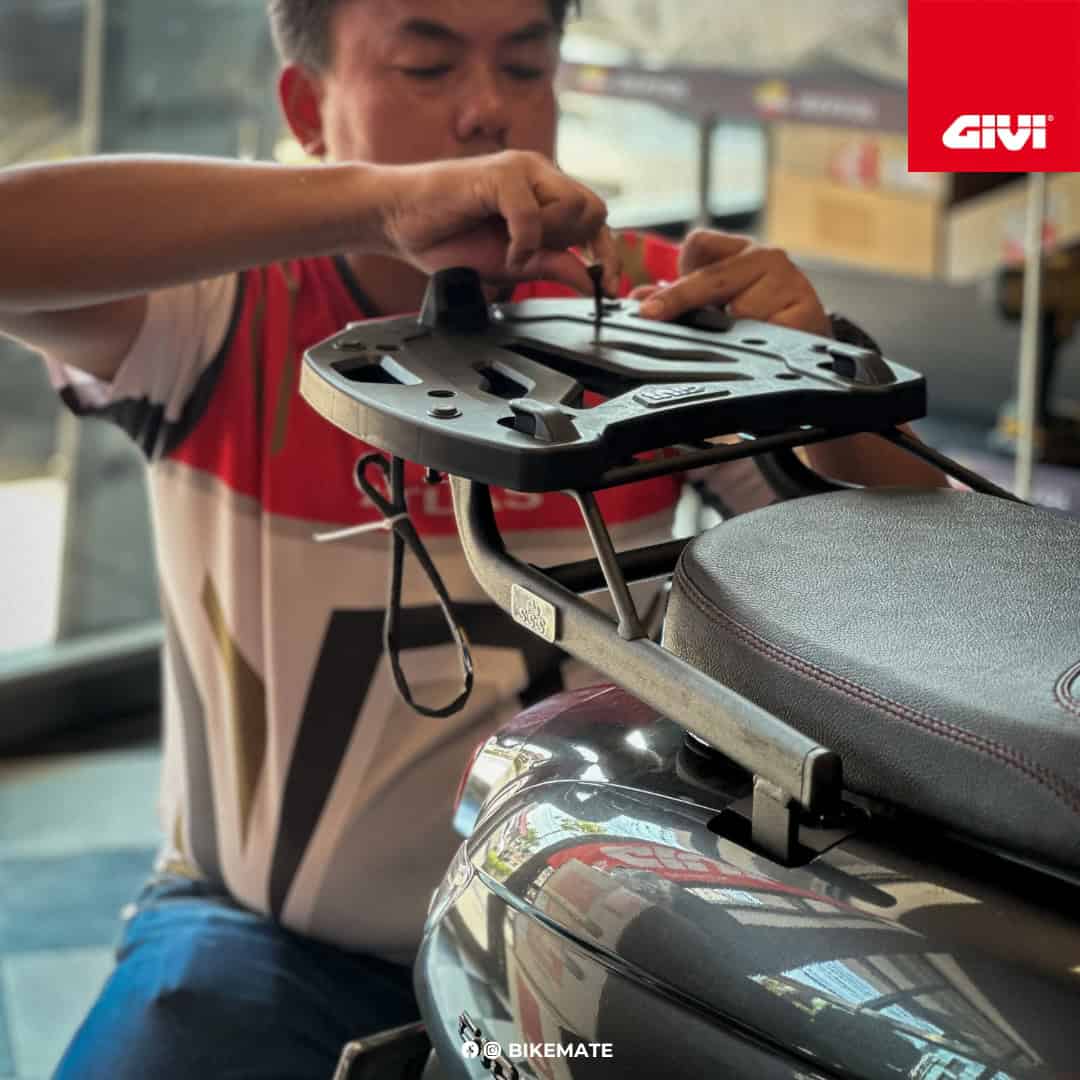Example picture of installing a GIVI rear box on a Honda Giorno+