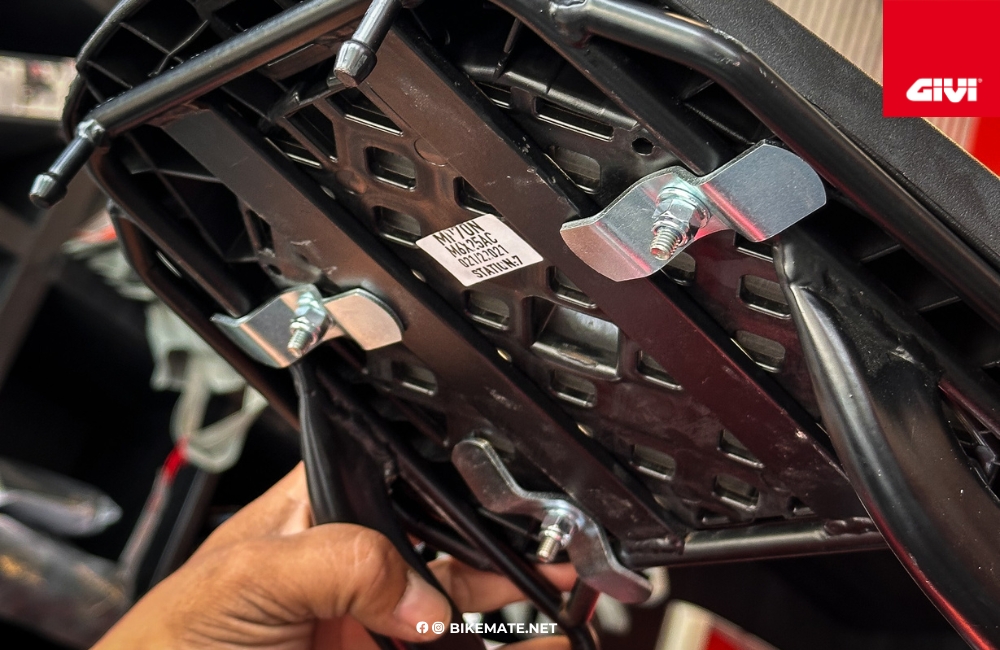 การติดตั้งกล่องท้าย GIVI E43NML ทำได้ง่ายและรวดเร็ว โดยใช้ถาด MP70N ที่มาพร้อมกับกล่อง เพียงติดตั้งถาดเข้ากับท้ายของ Yamaha X-Max 300 แล้วนำกล่อง GIVI E43NML วางลงบนถาดพร้อมล็อกเข้าที่ ระบบ Monolock ของ GIVI ทำให้การติดตั้งเสร็จสมบูรณ์ในเวลาไม่นาน คุณสามารถมั่นใจได้ว่าการติดตั้งนี้จะให้ความปลอดภัยและมั่นคง