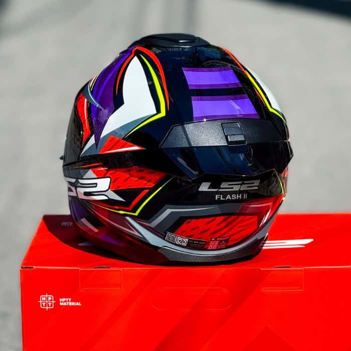 หมวกกันน็อคเต็มใบ LS2 FF802 Flash สี Kindom Black Red เป็นหมวกสไตล์ Urban-Touring สามารถใช้ขับขี่ทั่วไปในเมือง หรือ ใส่ออกทริประยะไกลได้ หมวกกันน็อครุ่นนี้มาพร้อมสปอยเลอร์สไตล์สปอร์ต ตัวเปลือกหมวกกันน็อคทำจาก HPTT (High Pressure Thermoplastic Technology) มีความแข็งแรง ทนทาน และนํ้าหนักเบาเป็นพิเศษ โฟม EPS ภายในมีความหนา ช่วยเพิ่มความปลอดภัยและยังระบายอากาศได้ดี