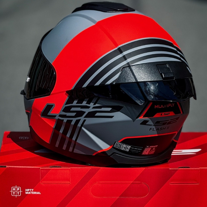 หมวกกันน็อคเต็มใบ LS2 FF802 Flash สี Multiply Matt Grey Black Red เป็นหมวกสไตล์ Urban-Touring สามารถใช้ขับขี่ทั่วไปในเมือง หรือ ใส่ออกทริประยะไกลได้ หมวกกันน็อครุ่นนี้มาพร้อมสปอยเลอร์สไตล์สปอร์ต ตัวเปลือกหมวกกันน็อคทำจาก HPTT (High Pressure Thermoplastic Technology) มีความแข็งแรง ทนทาน และนํ้าหนักเบาเป็นพิเศษ โฟม EPS ภายในมีความหนา ช่วยเพิ่มความปลอดภัยและยังระบายอากาศได้ดี